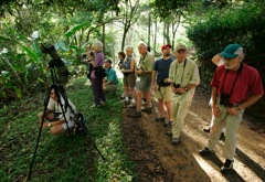 This fantastic tour explores parts of trails and the grounds of our property, and takes advantage of the huge variety of birds (over 400 recorded species) that we see in the tropical rainforest. The very best time for viewing the wide array of bird species in the tropical lowland rainforest is between 6:00am-7:30/8:00am (the tour can be longer if many birds are spotted). Your guide leads you around the Bosque gardens/forest areas, where you will see many species of birds, as well as monkeys, butterflies, and small mammals (like coatis and agoutis). Your guide will explain the various behavioral patterns and interactions of the birds in the area. The tour is enhanced with a Swarovski spotting telescope; binoculars are recommended; 1½-2 hours, easy hiking, 6:00am-7:30/8:00am; please arrange for the tour the previous evening. $30/person for 2 or more; $40/only 1 person.